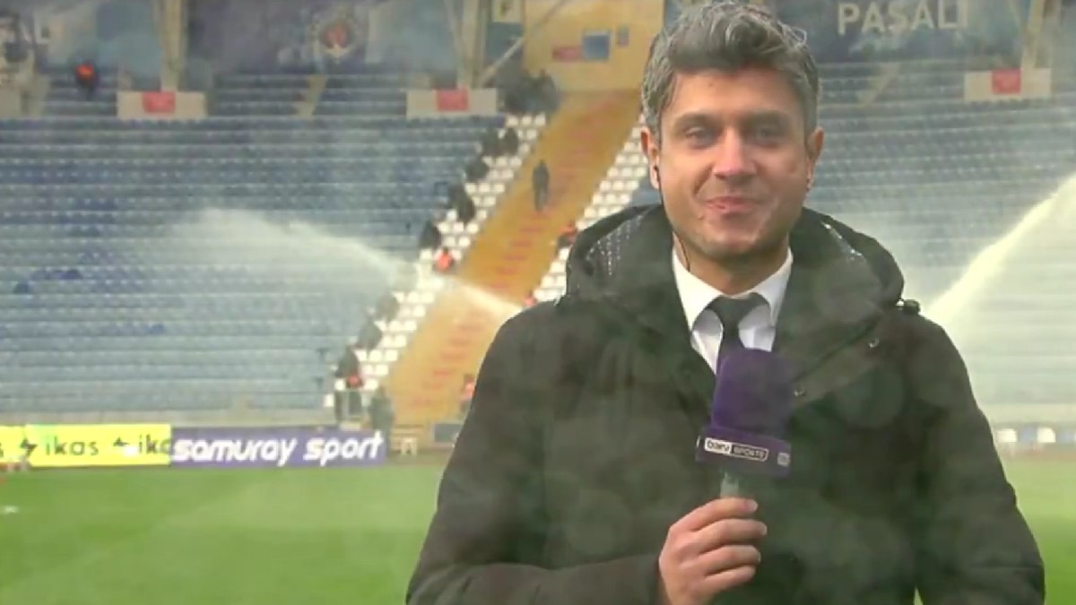 Fıskiye açıldı, muhabir sırılsıklam oldu